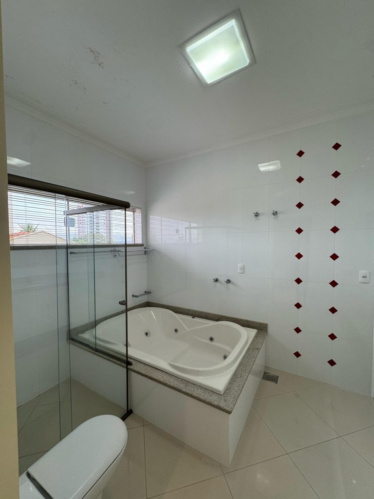 Suíte Master com closet, varanda e banheiro espaçoso com banheira